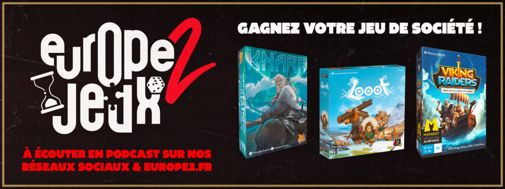 Cette semaine, écoutez le podcast Europe 2 Jeux et gagnez vos boites de jeux de société Looot, Viking Raiders et Knarr pour jouer en famille ou entre amis !
