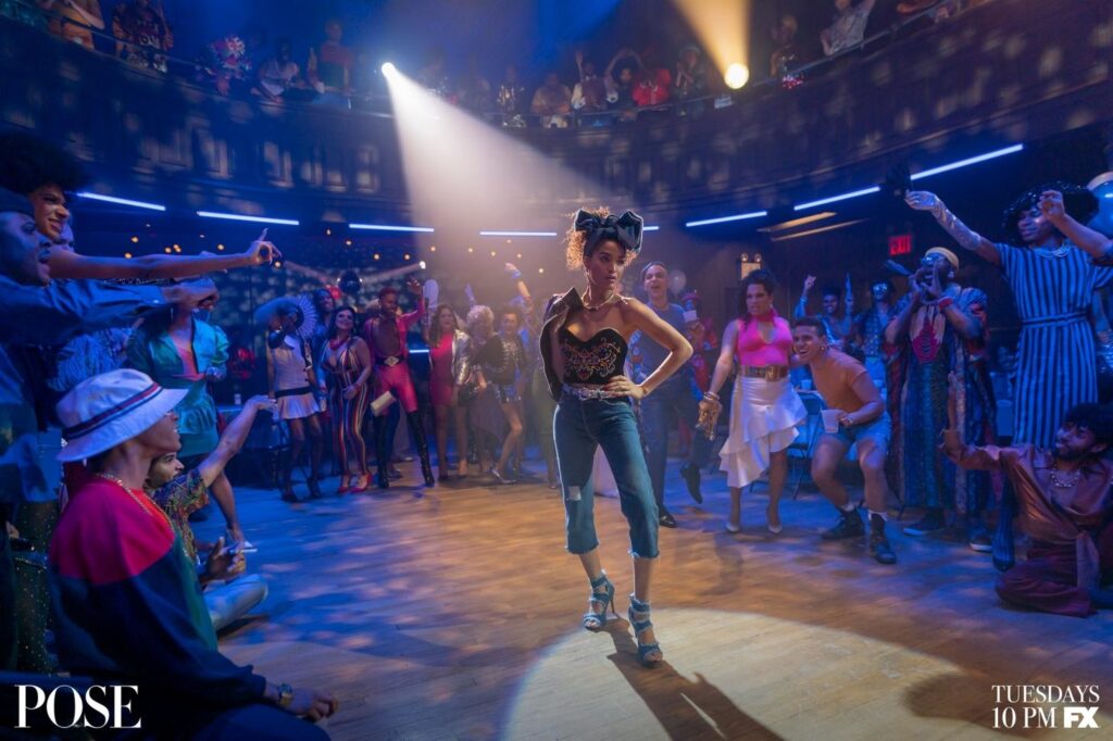 Choucroutes permanentées, boules à facettes, tubes des années 80… tout semble réunis pour presser le public à se replonger dans les pénombres pailletées de cette ère fastueuse. Une série galvanisée par une playlist enivrante rythmée par les icônes de l’époques telles que I Wanna Dance with Somebody de Whitney Houston ou Ain’t Nobody de Chaka khan. Flirtant avec la comédie musicale, on y découvre les débuts du « voguing », sorte de danse urbaine qui emprunte ses codes aux défilés de mode et plus tard repris par Madonna dans son célèbre tube.
