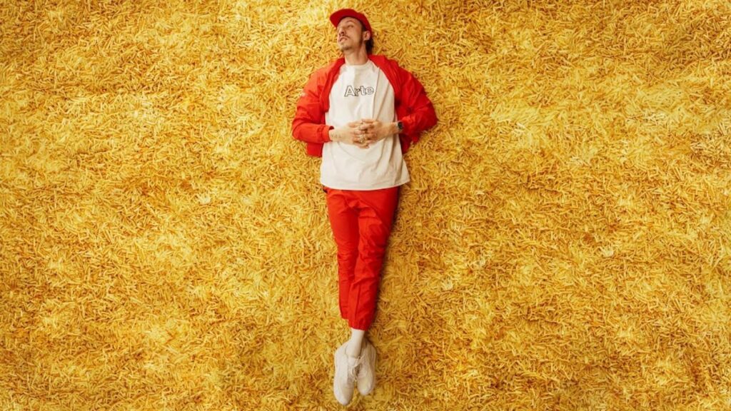 Porté ces dernières années par des tubes comme Soleil ou Bruxelles arrive, il nous revient cette fois-ci avec un titre entraînant dans lequel il aborde les imprévus de la vie et le fait de profiter avant qu’il ne soit trop tard. Un projet sur lequel il a collaboré avec Vladimir Cauchemar et mis en images dans un clip totalement loufoque où il apparaît en boxeur amateur de chat, en chirurgien esthétique ou encore se baignant sur un lit de frites. Du Roméo Elvis dans toute sa splendeur. On vous laisse jeter un coup d’œil.
