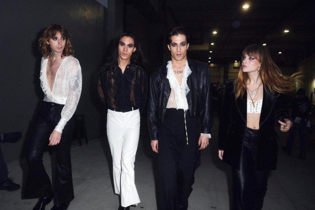Après l’Europe, direction les Etats-Unis pour Damiano David, Victoria De Angelis, Ethan Torchio et Thomas Raggi qui étaient les invités exceptionnels de l’émission The Voice US. Une nouvelle ligne qui s’ajoute à leur CV déjà bien rempli et qui devrait leur permettre d’accroître leur popularité outre-Atlantique. Pour l’occasion, les quatre membres du groupe se sont produits devant les jurés de l’émission parmi lesquels on retrouve Ariana Grande et John Legend. Ils ont ainsi interprété un medley de leurs titres Beggin’ et Mammamia de manière très énergique, comme à leur habitude. Regardée par plusieurs dizaines de millions d’américains, cette émission affirme un peu plus l’exposition de Maneskin à travers le monde et devrait leur permettre de remplir comme il se doit les salles de leur prochaine tournée à venir. Les italiens seront d’ailleurs de passage en France le 21 février prochain au Zénith de Paris. On ne sait pas vous, mais nous y sera ! En attendant, on vous laisse profiter en vidéo de ce que le groupe de rock a à nous offrir !