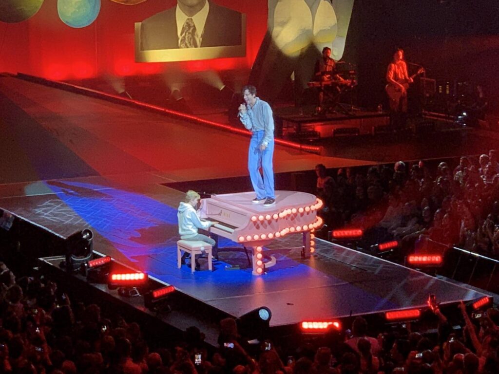 En effet, l’après-midi même de son concert, une femme « très gentille » a abordé Mika dans les rues de Roubaix pour lui dire que son fils de 11 ans l’adore. « Elle explique que toute la journée, il joue mes musiques au piano et qu’il a des billets pour ce soir. Je n’ai pas répondu » affirme t-il. Car malheureusement, avant ses concerts, le chanteur économise sa voix et ne parle pas. Pour « se faire pardonner » de son attitude, l’interprète de Relax, Take It Easy a donc invité ce jeune fan à le rejoindre sur scène… Un joli moment à voir d’urgence !
